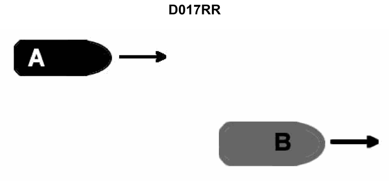 131. INLAND ONLY Vessel "A" is power-driven and overtaking power-driven vessel "B" as shown in illustration D017RR below and will pass without changing course. What signal should vessel "A" sound?