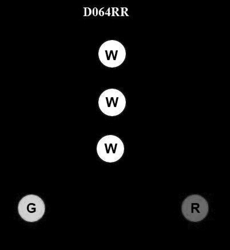 442. BOTH INTERNATIONAL & INLAND You see the display of lights shown in illustration D064RR below. These lights could indicate which of the following?