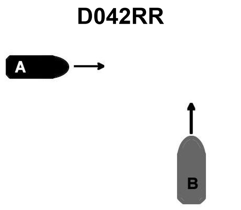 575. BOTH INTERNATIONAL & INLAND Two power-driven vessels are crossing as shown in illustration D042RR below. Vessel «A» sounds three short blasts on the whistle. What is the meaning of this signal?