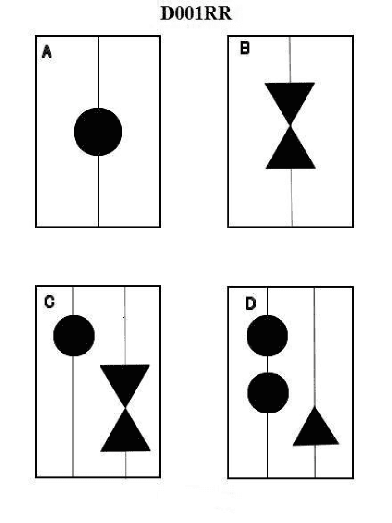 673. BOTH INTERNATIONAL & INLAND A vessel fishing should display which of the shapes shown in illustration D001RR below?
