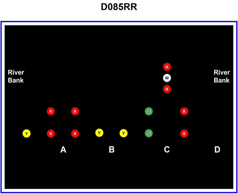 80. INLAND ONLY You see the lights shown in illustration D085RR below while proceeding in a channel. What action should you take?