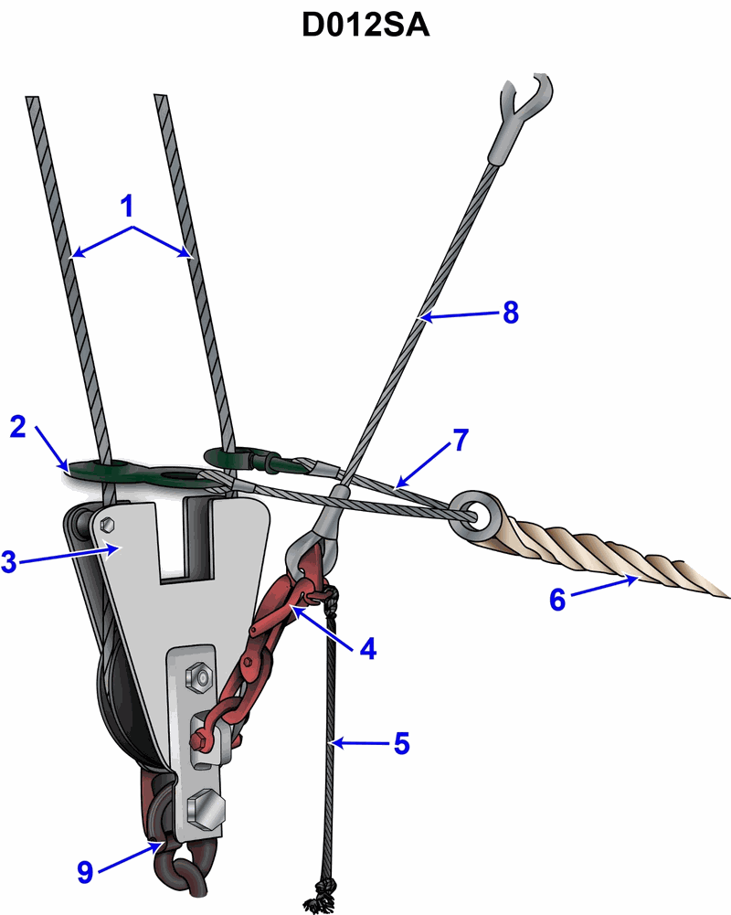 599. In illustration D012SA below, what is the mechanism that will release the tricing pendant?
