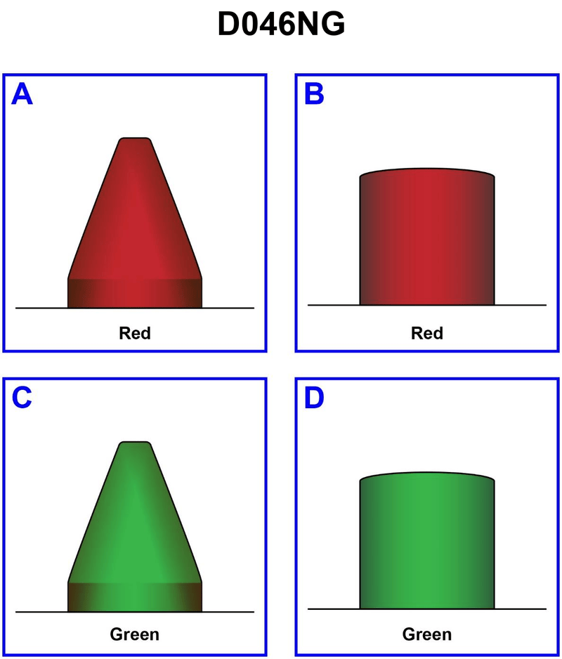 499. Under the IALA-A Buoyage System, when entering from seaward which buoy as shown in illustration D046NG below, should be left to starboard?