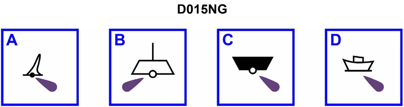 557. A large automated navigational buoy, such as those that have replaced some lightships, would be shown on a chart by which symbol in illustration D015NG below?