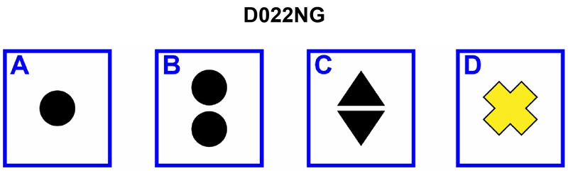 821. In both regions of the IALA buoyage system, which topmark shown in illustration D022NG below is used on a special mark?