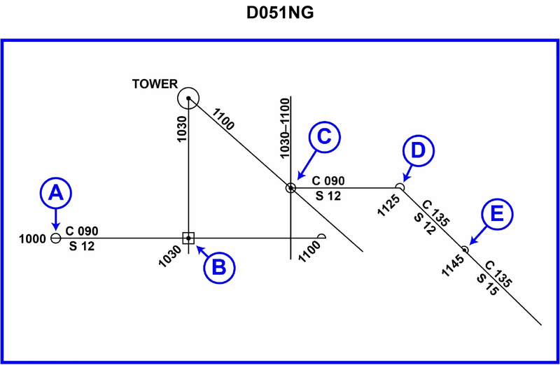 2971. In illustration D051NG below, why was the position labeled «D» plotted?
