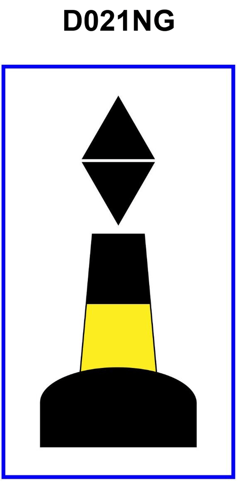 3399. While proceeding along the Norwegian coast on course 039°T, you sight the black-yellow-black banded buoy shown in illustration D021NG below, bearing 053°T. What action should you take?