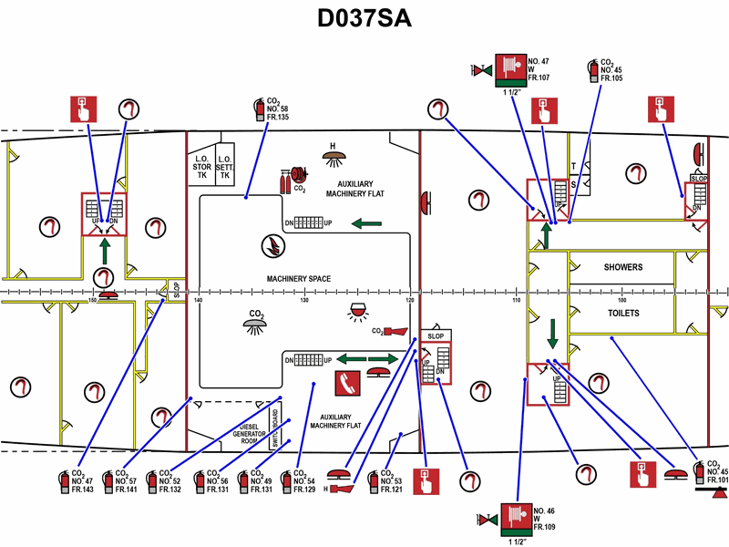4099. There is an out of control fire on the Auxiliary Machinery Flat. Utilizing illustration D037SA below, what fixed extinguishing system in that space would be the best means to extinguish the fire?