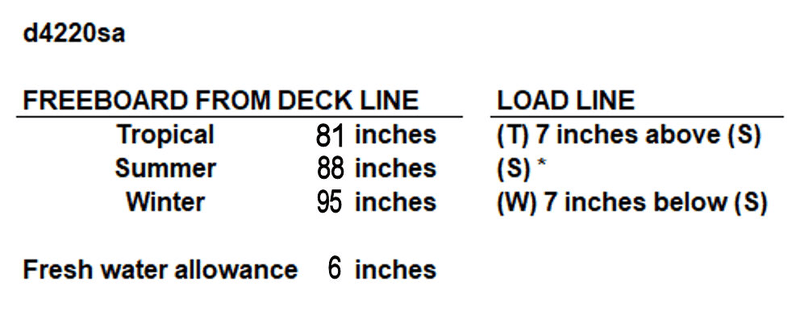 4554. You are loading in a port subject to the winter load line mark and bound for a port subject to the tropical load line mark. You will enter the summer zone after steaming four days, and you will enter the tropical zone after twelve days. You will consume 38 tons of fuel, water, and stores per day. The hydrometer reading at the loading pier is 1.004, and the average TPI is 72. What is the minimum freeboard required at the start of the voyage?