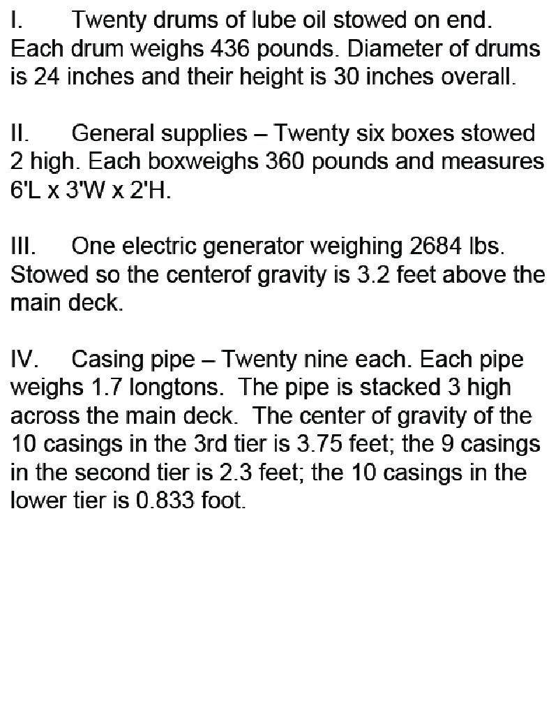 146. You are on a supply run to an offshore drilling rig. You are carrying the load show in table ST-0018 below. What is the height above the main deck of the center of gravity of the cargo?