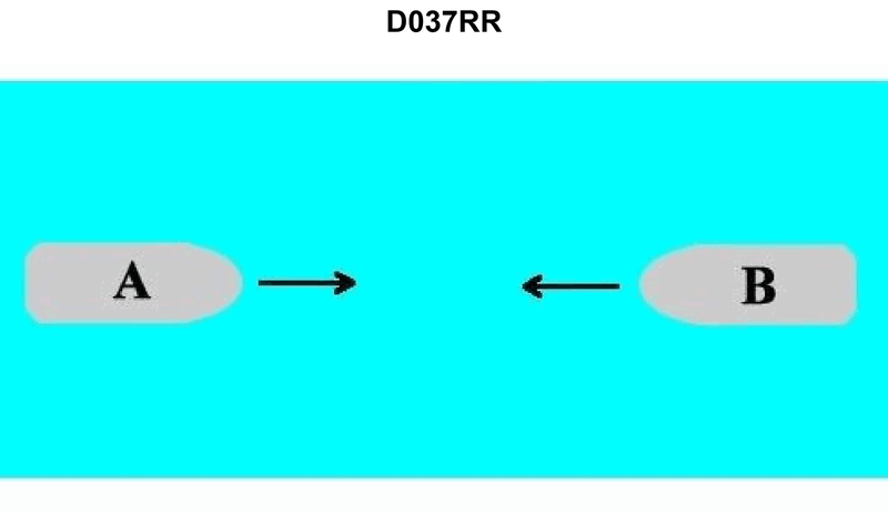 372. You are aboard vessel «A» in a narrow channel and the pilot is approaching vessel «B» as shown in illustration D037RR below. Which of the following is the reason he has not previously changed course to the starboard side of the channel?