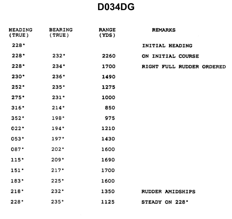 581. You are conducting trials to determine the maneuvering characteristics of your vessel. While making a turn, you take ranges and bearings of an isolated light. The results are shown in illustration D034DG below. What is the transfer for a turn of 45°?
