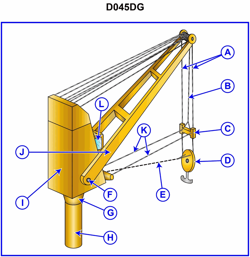 897. What does item "A" refer to in illustration D045DG of a 30-ton pedestal crane?