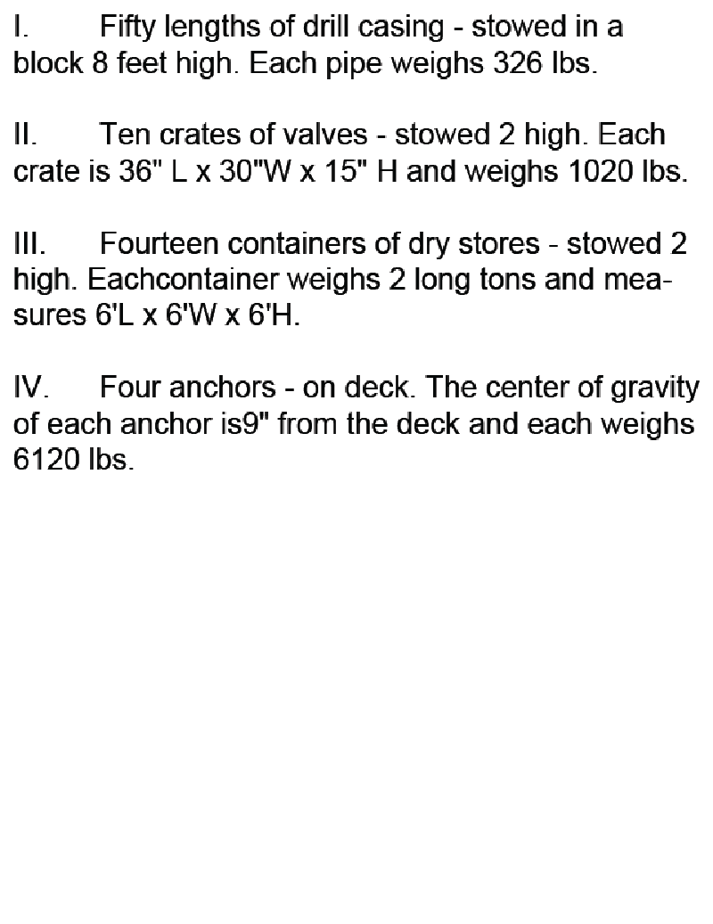 131. You are on a supply run to an offshore drilling rig. You are carrying the load show in table ST- 0004 below. What is the height above the main deck of the center of gravity of the cargo?
