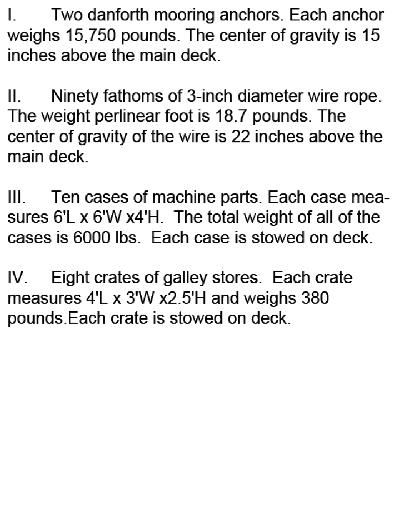 134. You are on a supply run to an offshore drilling rig. You are carrying the load show in table ST-0019 below. What is the height above the main deck of the center of gravity of the cargo?