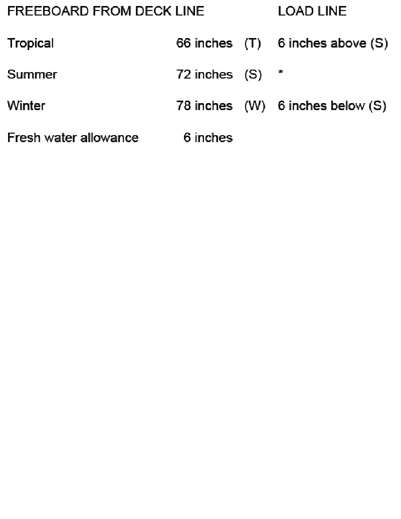 69. You are loading in a port subject to the tropical load line mark and bound for a port subject to the winter load line mark. You will enter the summer zone after steaming eight days, and you will enter the winter zone after a total of ten days. You will consume 31 tons of fuel, water, and stores per day. The hydrometer reading at the loading pier is 1.016, and the average TPI is 41. What is the minimum freeboard required at the start of the voyage? Reference Table BL-0015 below.
